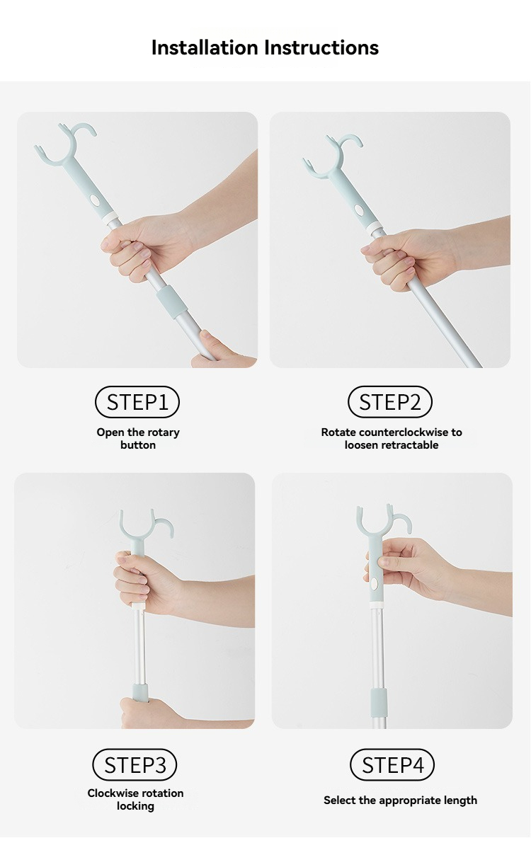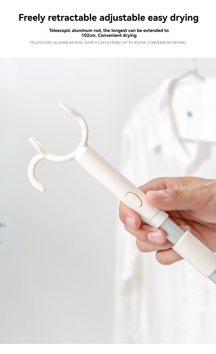 Telescopic Clothes Drying Pole - This modern minimalist household clothes fork is crafted from PP and aluminum pole, designed specifically for balcony clothes drying and picking. Featuring a telescopic design (specifications: 8*116cm), it extends easily to reach high clotheslines without ladders, making hanging and retrieving clothes effortless. Available in white and smart blue, its sleek style complements balcony decor, while the durable PP handle and aluminum pole ensure sturdiness and long-term use. As a practical laundry accessory, it simplifies daily clothes drying tasks, ideal for home balcony use.