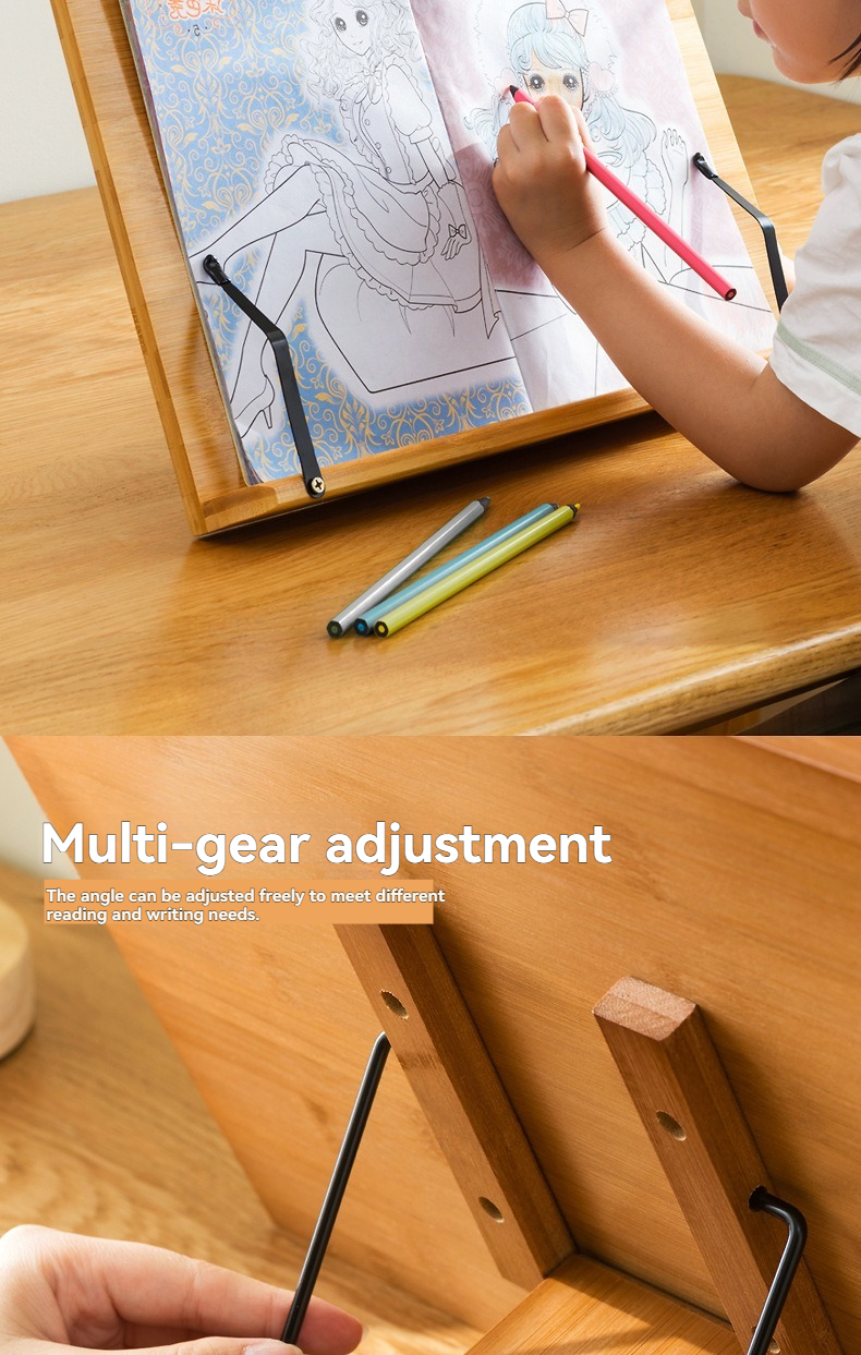 Student Reading Stand - This multifunctional wooden book stand is perfect for copybook practice, chanting, and daily reading, designed specifically for students and book lovers to hold textbooks, calligraphy copybooks, scriptures, and more. Crafted from durable wood with a 6mm thickness, it provides stable support to keep books open at the desired page, reducing neck and eye strain during extended study or reading sessions. Its versatile design adapts to various scenarios—studying, calligraphy practice, chanting—and offers a comfortable viewing angle to boost focus and productivity. Lightweight yet sturdy, it’s an essential addition to desks, study areas, or classrooms, helping organize reading materials and maintain a tidy learning space.